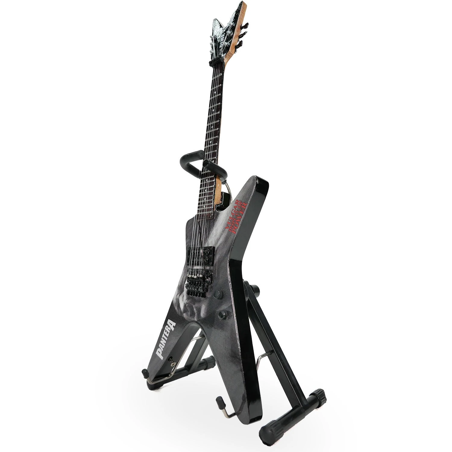 Approved by the Dimebag Estate / Dean Guitars / PANTERA. This collectible miniature replica captures all design details with vibrant hand-painted and airbrushed graphics.